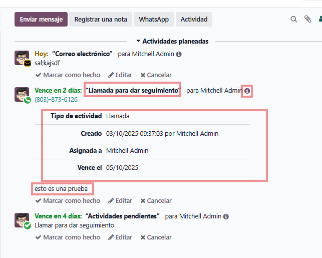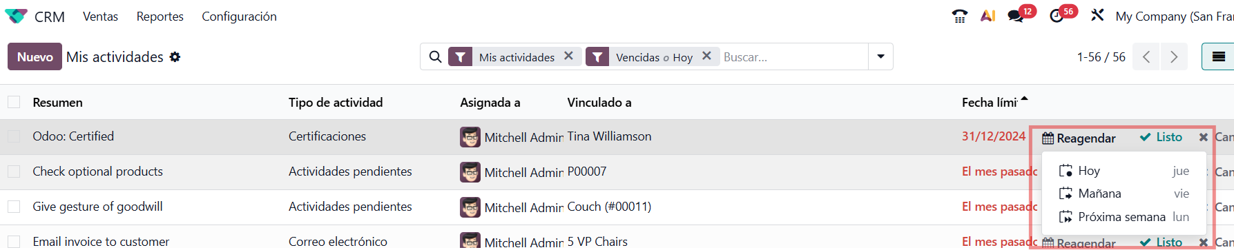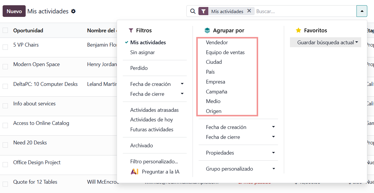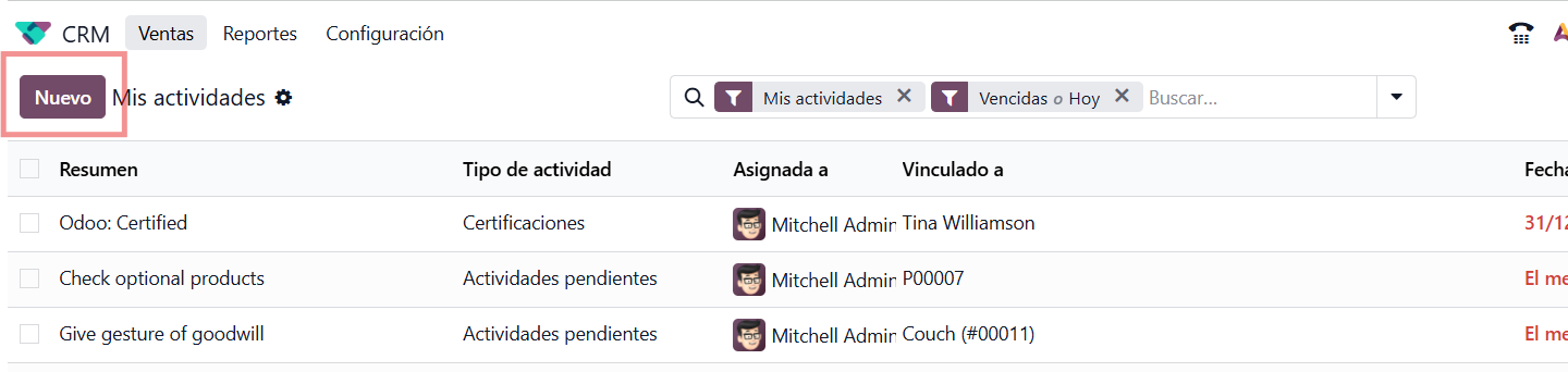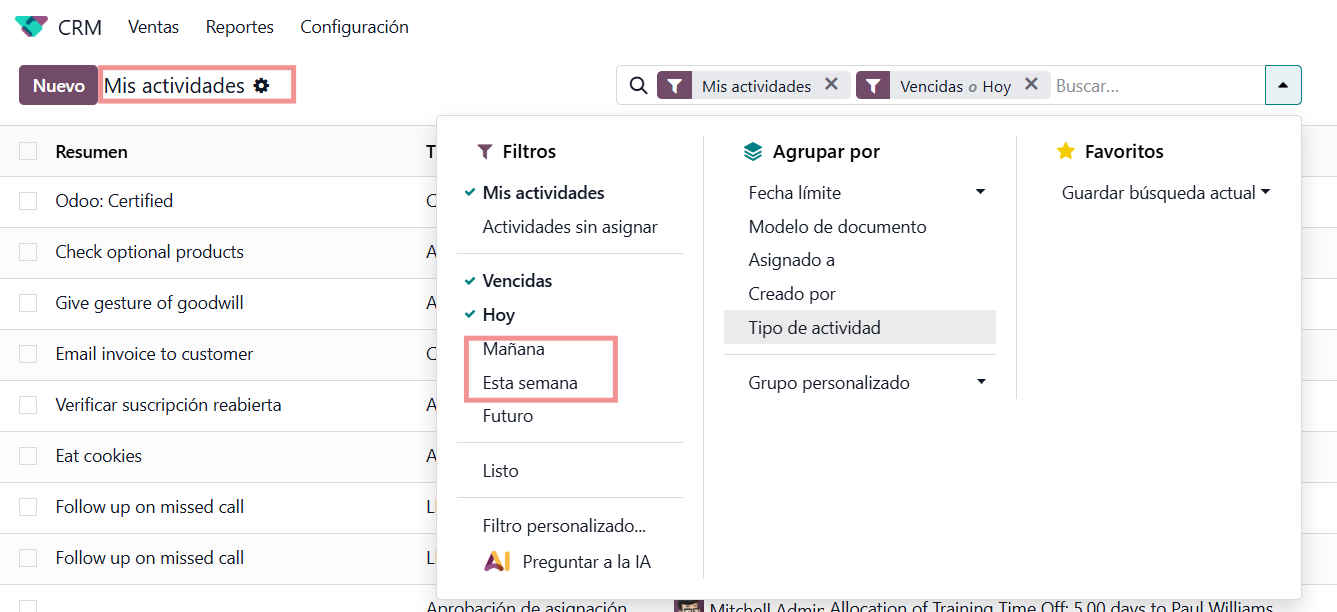 - Nuevo filtro por fecha de vencimiento (mañana, esta semana) en la vista Actividad