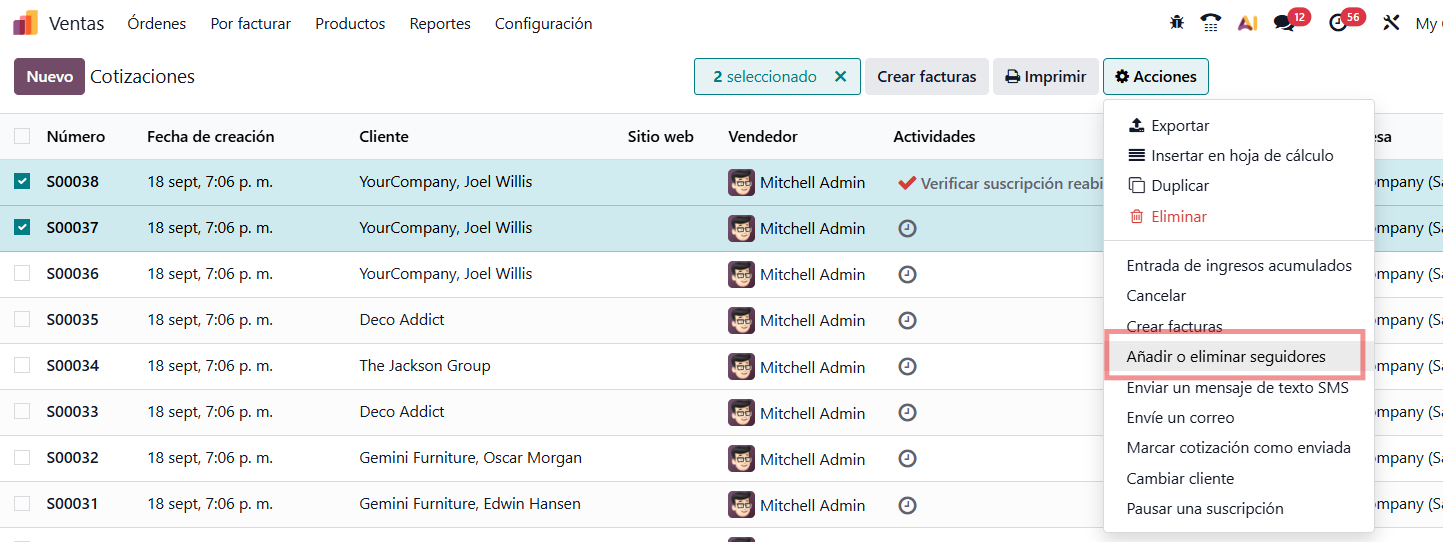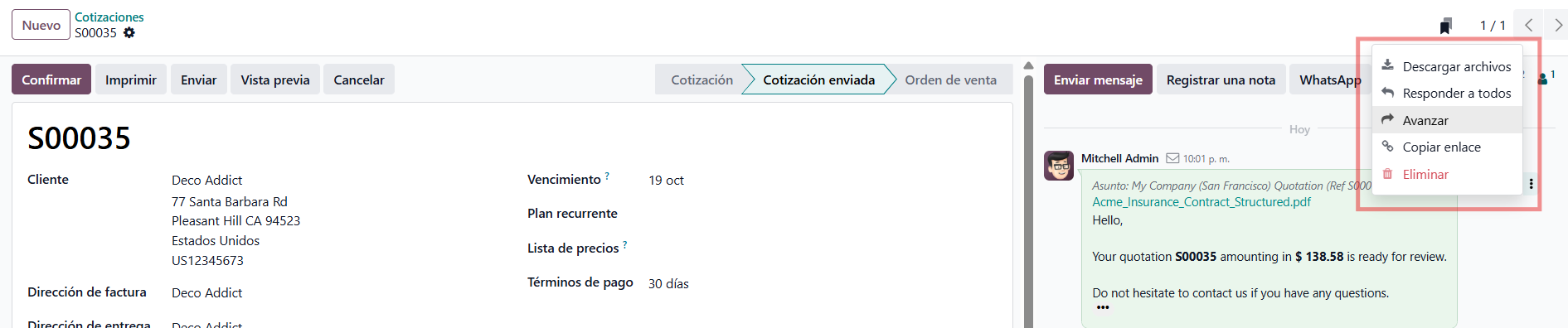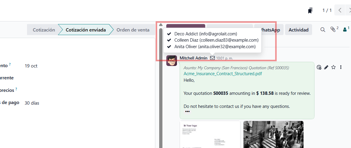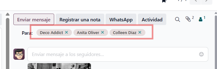 Todos los destinatarios de correo electrónico ahora se muestran en Odoo y en los correos electrónicos. Se ha mejorado la interfaz y la experiencia de usuario de los destinatarios.