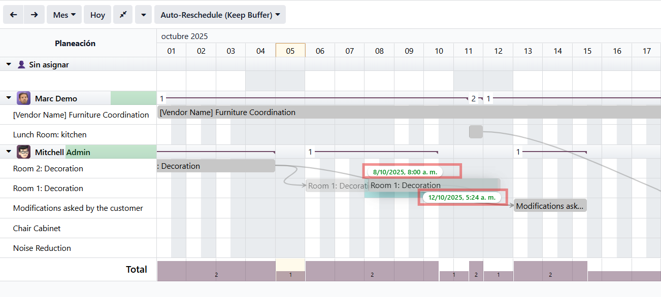 - La vista Gantt ahora incluye un acercamiento inteligente según la escala, usabilidad mejorada, fechas de inicio y finalización visibles durante la función de arrastrar y soltar y etiquetas más legibles.