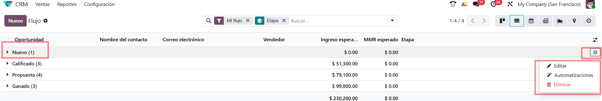 - Al agrupar registros en la vista de lista, edita el campo de agrupación con el menú de acción.